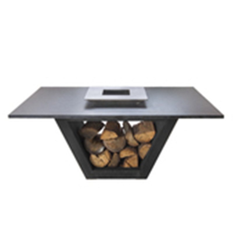 Granieten blad is gemakkelijk schoon te maken, de voet is gemaakt van cortenstaal of koolstofstaal en bevat houtopslag voor meer stabiliteit. Centraal gelegen open haard is een unieke functie en creëert een exclusieve sfeer