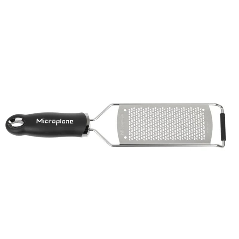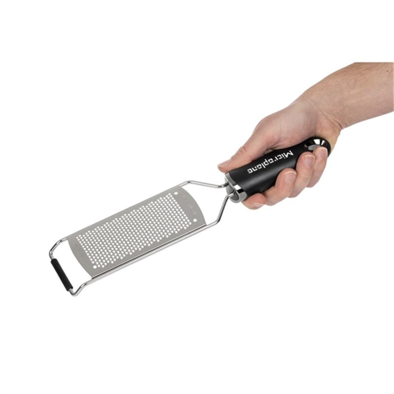 De hoogwaardige Microplane Gourmet fijne rasp zorgt er door het vlijmschermpe RVS raspblad voor dat het raspen van allerlei ingrediënten snel en moeiteloos gaat. Met anti-slip rubberen handgreep voor een stevige grip en minder kans op ongelukken.