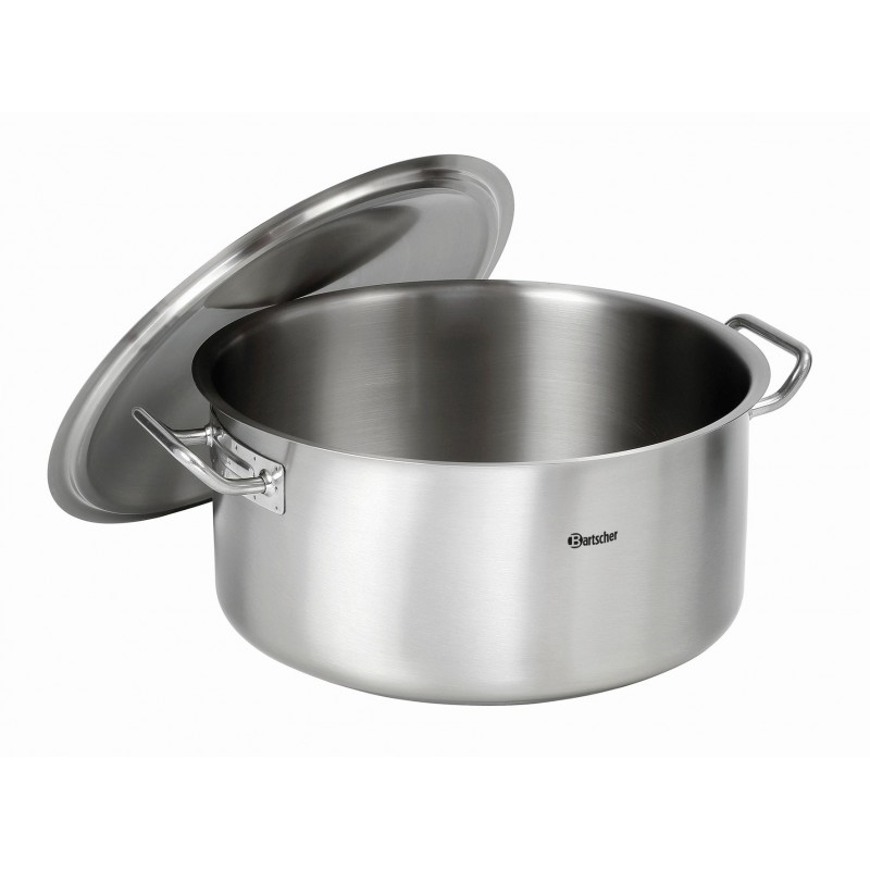Pan en deksel van roestvrij staal Handgrepen worden niet warm Geschikt voor inductie, gas en elektrisch Inhoud: 25 liter Afmetingen: Ø 430 mm, hoogte 275 mm Inclusief deksel