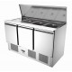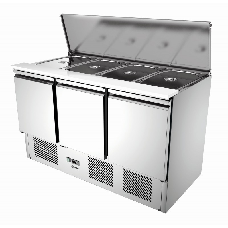CNS Voor 4 x 1/1 GN of 2 x 1/1 GN en 4 x 1/2 GN, GN-bakken van 150 mm diep Snijplank van polyethyleen 3 deuren Luchtgekoeld Elektronische besturing Condensverdamper Inhoud: 390 liter Koelmiddel R134a Temperatuurbereik: 0 °C tot 10 °C Met geïsoleerde verdamper Vermogen: 0,321 kW / 220-240 V 50 Hz Afmetingen: B 1365 x D 700 x H 870 mm Inclusief: 3 verbindingsstukken: lengte 535 mm, breedte 35 mm 3 verbindingsstukken: lengte 326 mm, breedte 25 mm 4 verbindingsstukken: lengte 174 mm, breedte 25 mm