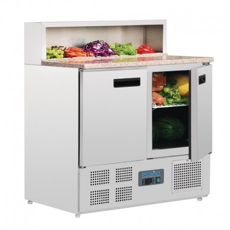 RVS met marmeren werkblad. Geschikt voor GN. 2 deuren.Ontvanger :
