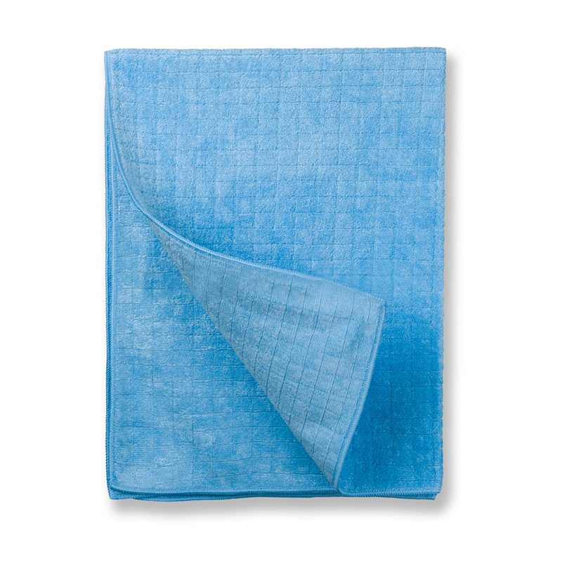 Raamdoeken set 2 doeken: grote blauwe droogdoek en een kleinere blauwe ultra microvezeldoek