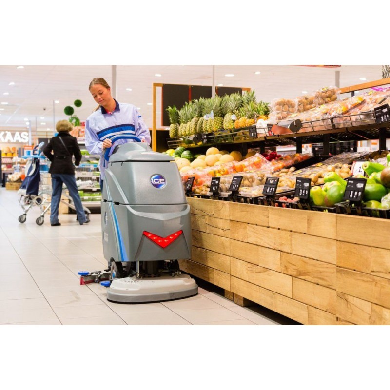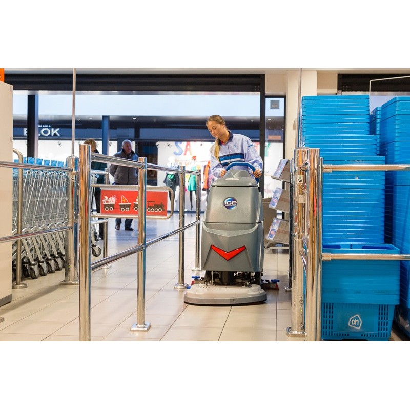 De ICE i24BT is tractie aangedreven (op de wielen aangedreven). Hierdoor heeft de ICE i24BT schrobzuigmachine net dat beetje extra vermogen, waardoor het een heel praktische en fijne schoonmaakmachine is. Het strakke en ergonomische design is speciaal ontworpen voor een optimaal gebruikersgemak. Standaard wordt bij dit model schrobzuigmachine een noodstopsysteem meegeleverd, zodat veiligheid is gegarandeerd en eventuele beschadigingen worden voorkomen. Met een ICE24BT schrobzuigmachine kiest u voor efficiënt reinigen.
