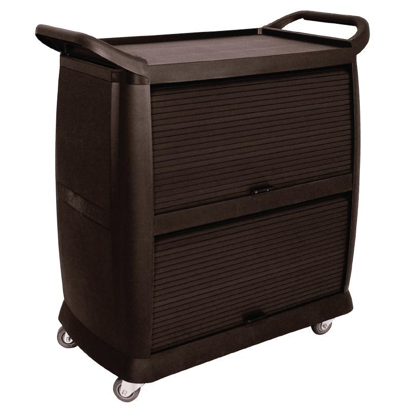 Sterk, duurzaam en modern design geschikt voor restaurant, hotel en institutionele toepassingen. Voorzien van roldeuren voor opslag of bescherming van goederen.
