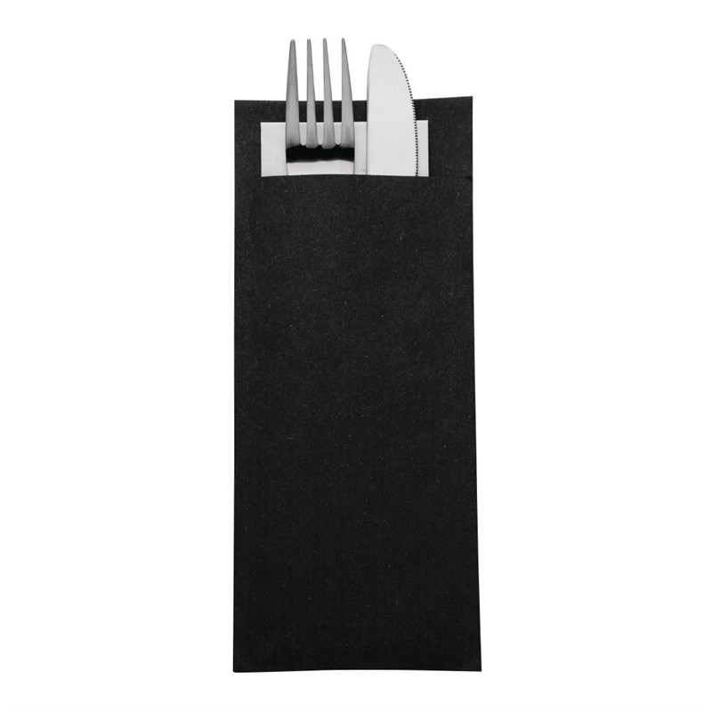 Europochette Zwart Bestekzakje met Wit Servet (600 stuks)