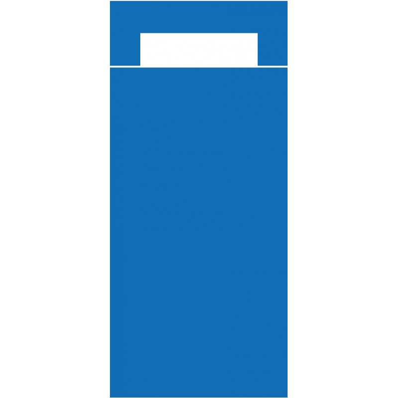 Pochetto / Bestekzakje Royal Blue met wit servet (Doos: 500 stuks)