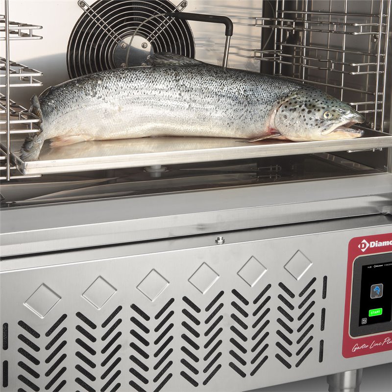 4 cycli om te kiezen uit "Soft Chill" of "Soft Freeze" voor delicate producten, "Hard-Chill" of "Hard-Freeze" voor grote onderdelen, timerregeling met bel aan het einde van de cyclus (of) kernsondebesturing, met ook de holdingfunctie aan het einde van de cyclus en alarmeringssysteem (visueel).