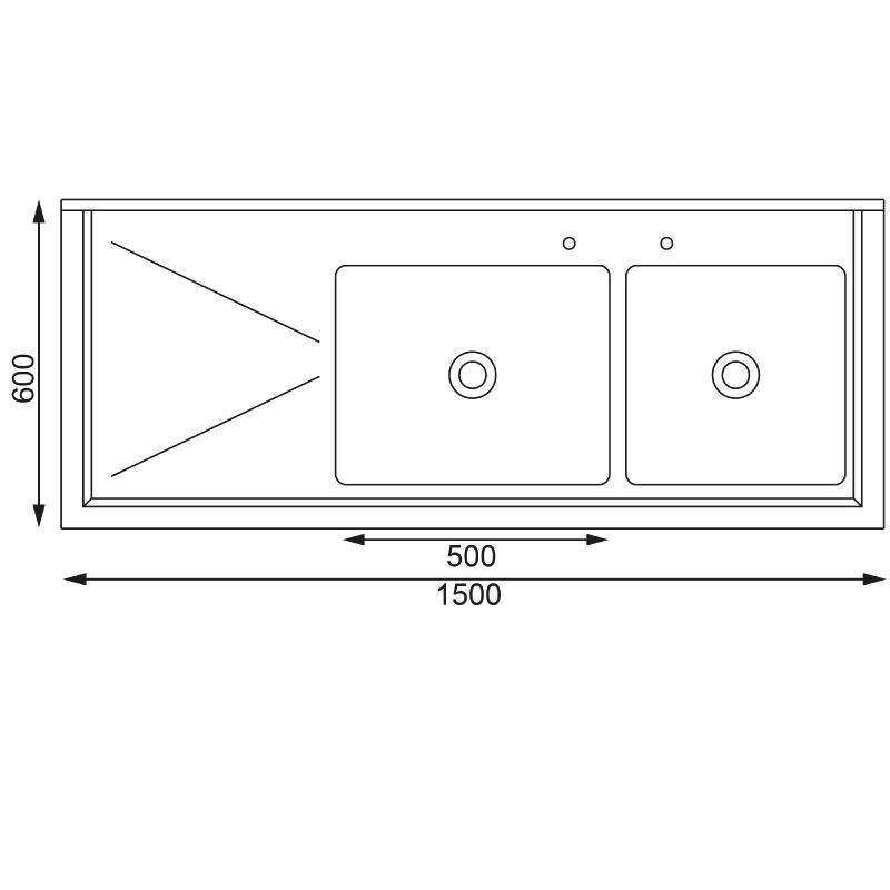 Vogue RVS spoeltafel 2 spoelbakken rechts 150x60cm