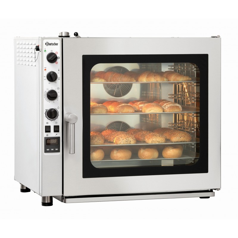 Uitvoering geheel in CNS Draaiknoppen Volume tot max. 7 x 1/1 GN of 600 x 400 mm Functies: hetelucht, stomen, combi-stomen Wisselende motorrichting (rechts-/linksom draaiend) voor een optimaal klimaat in de gaarruimte Ventilatorsnelheid in 2 standen regelbaar Rechtstreekse stoominjectie Stoomafvoer regelbaar Ovenruimteverlichting Praktische GN-dwarsslede LED-indicaties voor kerntemperatuur Voorbereid voor plaatsing van een kerntemperatuurmeter Voorbereid voor de houder voor handsproeier Dubbele deurbeglazing, binnendeur voor reiniging gemakkelijk te openen Uitneembare geleiders Roosterafstand 74 mm Temperatuurbereik: 50 °C tot 280 °C Wateraanvoer 3/4" Vermogen: 9,6 kW / 400 V 50 Hz 3 NAC Afmetingen: B 890 x D 815 x H 815 mm Levering inclusief: 1 rooster 1/1 GN en 1 bakblik 1/1 GN