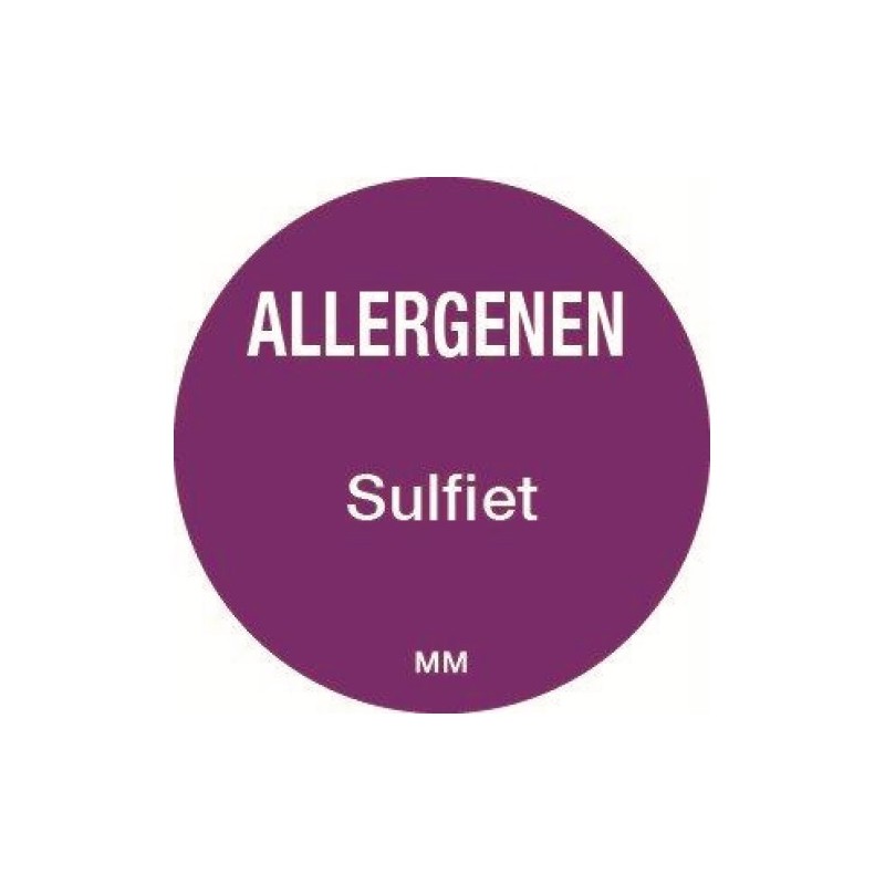 Allergie sulfiet sticker rond 25 mm 1000/rolOntvanger :