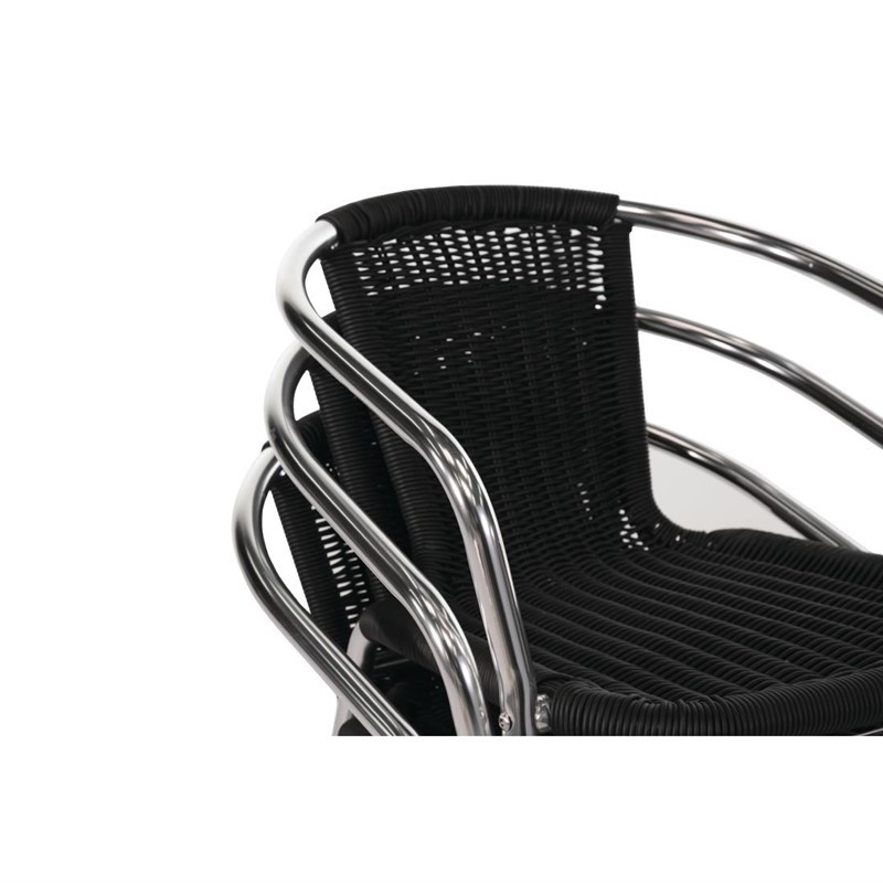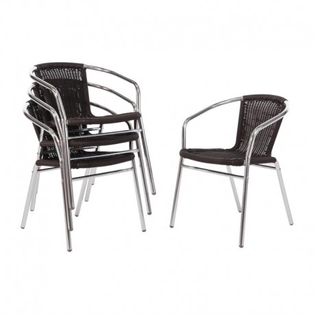 Aluminium frame. PE rotan zitting. Zithoogte: 45cm. Stapelbaar. 4 stuks.Ontvanger :