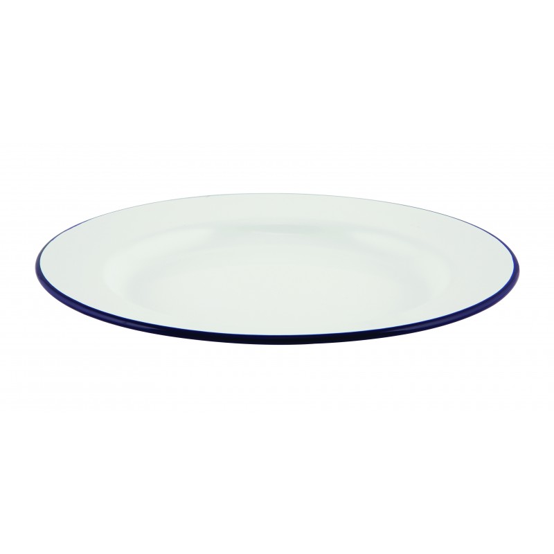 Emaille bord met blauwe rand 24 cm (per 12 stuks)