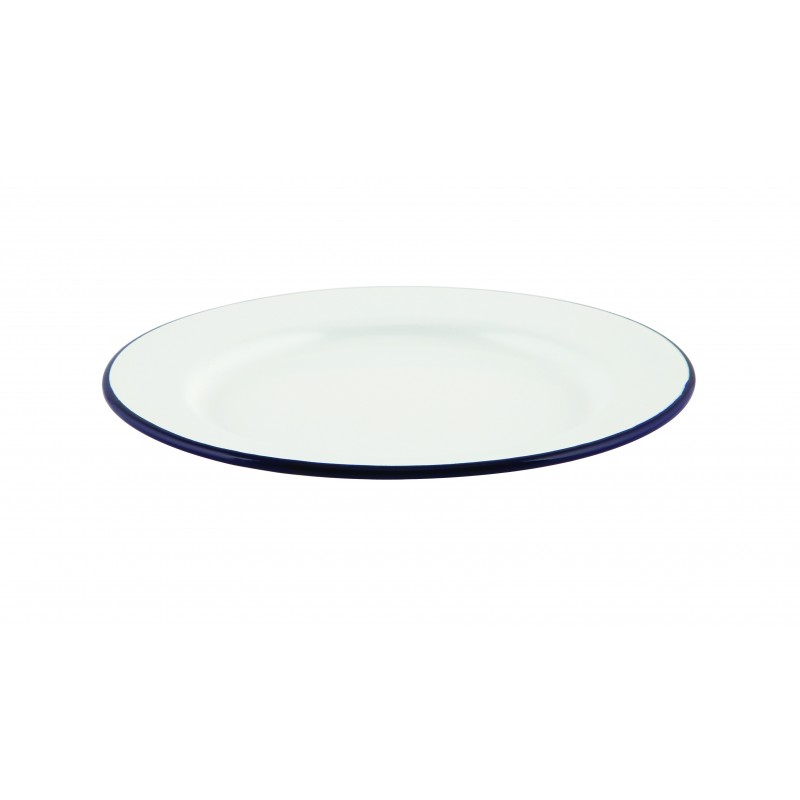 Emaille bord met blauwe rand 26 cm (per 12 stuks)