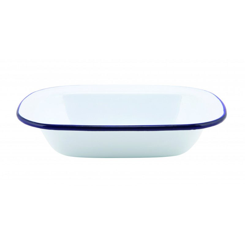 Emaille ovenschaal met blauwe rand 18 cm (per 12 stuks)