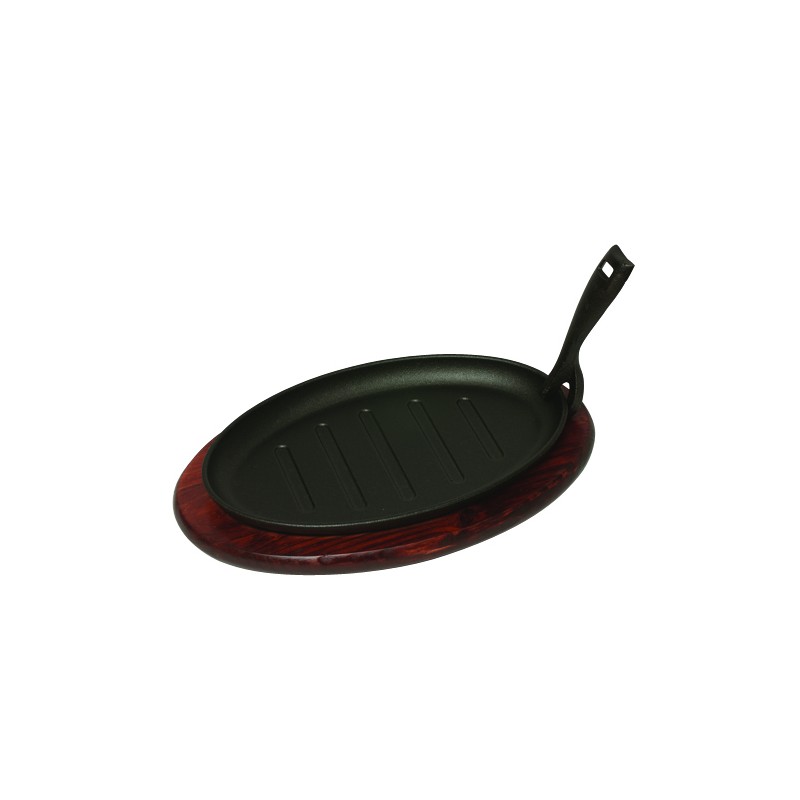 Gietijzer serveerschaal ovaal 25x16cm op hout (per 1 stuks)