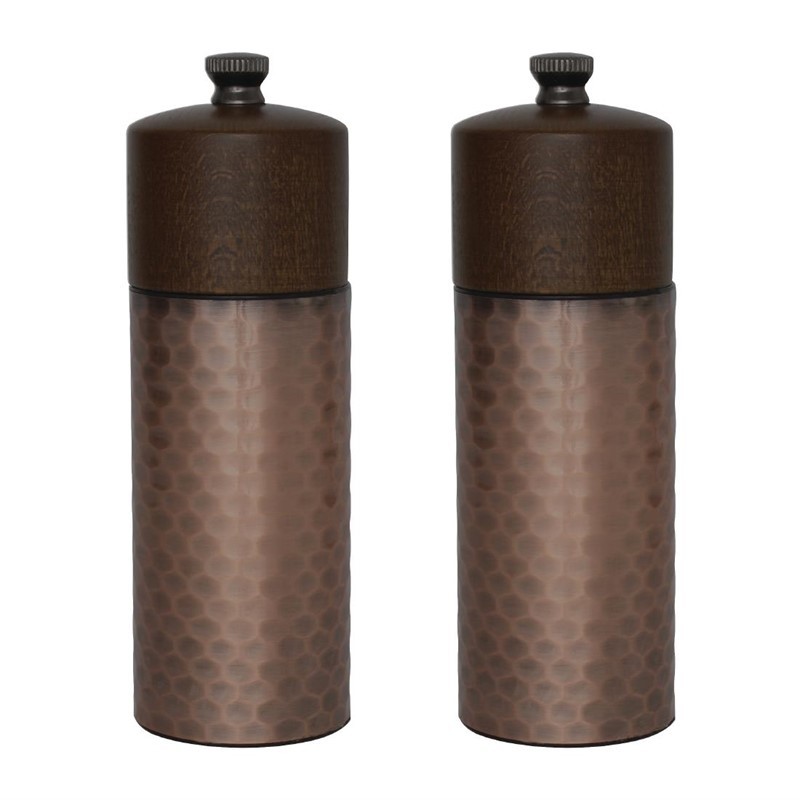 Olympia koperen en houten zout- en pepermolenset 15cm