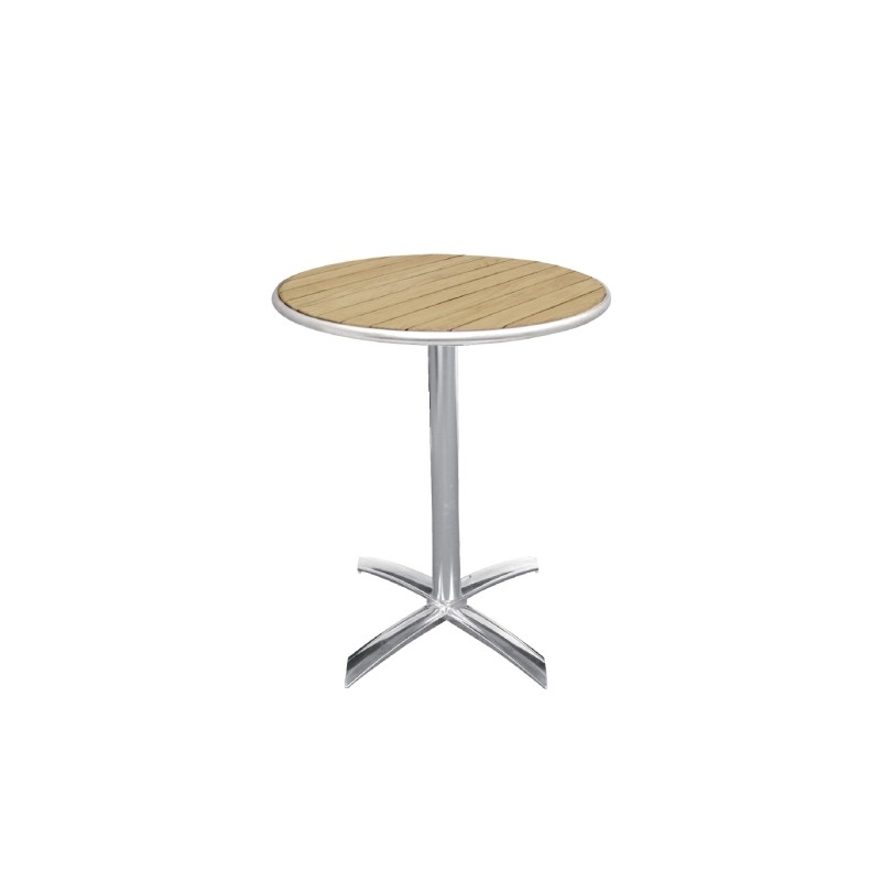Aluminium frame. Essenhouten blad. 72(h) x 60(Ø)cm.Ontvanger :