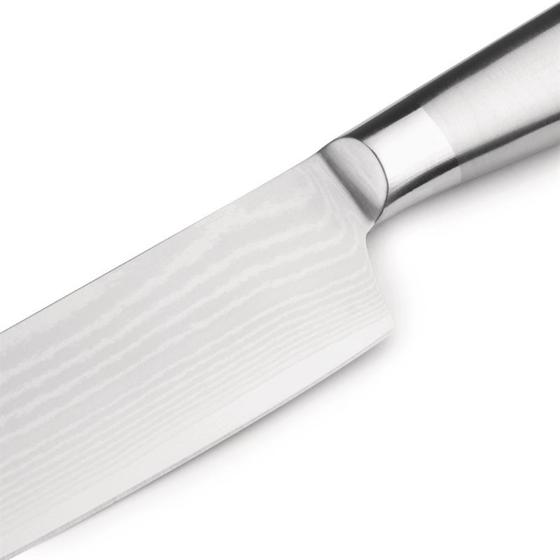 | Overige Kenmerken | Zeer scherp, met meerdere lagen RVS, Twee lagen damaststaal bedekken de kern, voor langdurige scherpte en een mooie finish, Damaststaal staal zorgt er ook voor dat voedsel minder blijft plakken aan het lemmet, De stalen kern in het lemmet is gehard tot ee |
