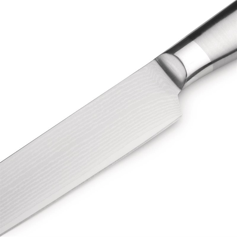 | Overige Kenmerken | Zeer scherp, met meerdere lagen RVS, Twee lagen damaststaal bedekken de kern, voor langdurige scherpte en een mooie finish, Damaststaal staal zorgt er ook voor dat voedsel minder blijft plakken aan het lemmet, De stalen kern in het lemmet is gehard tot ee |