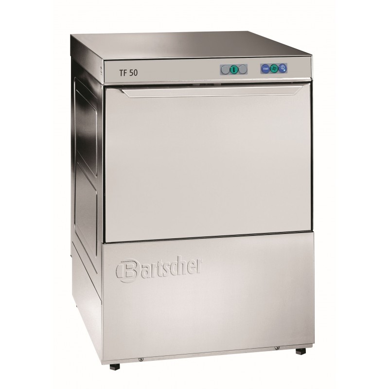 Afmetingen: B 590 x D 600 x H 850 mm Materiaal CNS 18/10 Maximale capaciteit per uur: 30 korven Afmetingen korf 500 x 500 mm Benodigde warmwater aansluiting temp. 55°C Naspoel doseerpomp Deurcontact schakelaar Droogloopbescherming Totaal vermogen 3,45 kW / 1 NAC 220-240 V Tankverwarming 2,7 kW Boilerverwarming 2,8 kW Programmaduur 120 seconden Waterverbruik bij 2 bar 2,3 liter Tankinhoud 29 liter Waterdruk 2-4 bar Water aanvoerleiding G 3/4" MI Water afvoerleiding Ø 24 mm Accessoires: 1 glazenkorf,
