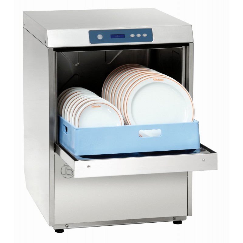 Met afvoerpomp en waterontharder Afmetingen: B 600 x D 610 x H 850 mm Materiaal: CNS 18/10 Deur dubbelwandig Maximale capaciteit per uur: 60 korven Afmetingen korf: 500 x 500 mm Naspoel doseerpomp Hoofdwas doseerpomp Deurcontact schakelaar Droogloopbescherming Totaal vermogen: 6,65 kW / 400 V 50 Hz 3 NAC Tankverwarming: 1,1 kW Boilerverwarming: 6 kW Programmaduur: 60-360 sec. Waterverbruik bij 2 bar: 2,5 - 7 liter
