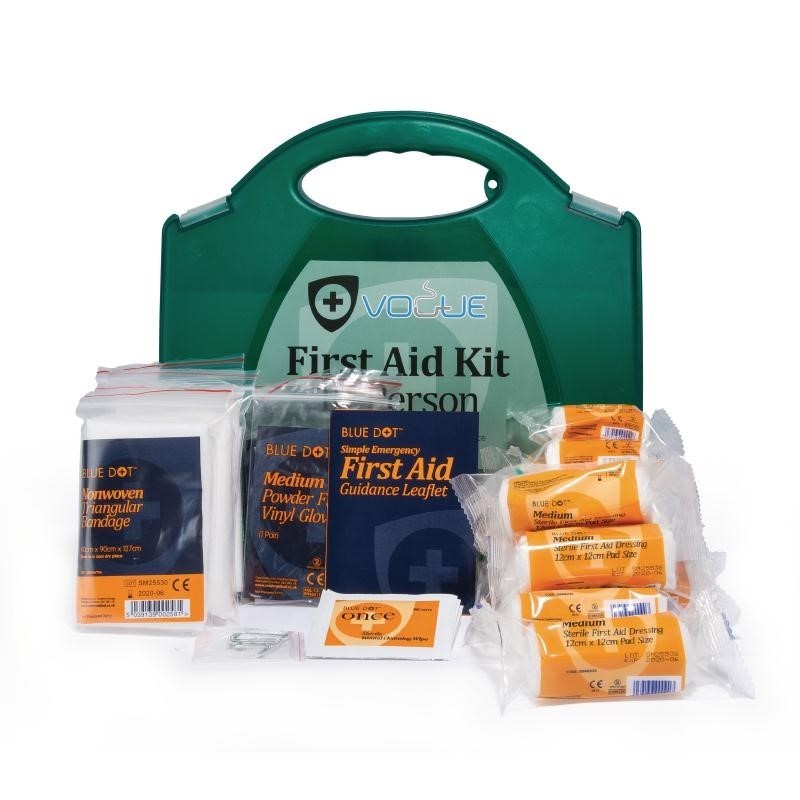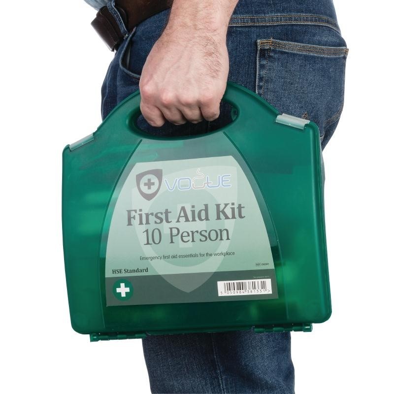 | Overige Kenmerken | Voldoet aan de minimale eisen die de HSE stelt voor eerste hulp op de werkplek, Aantrekkelijke doos, Voor 10 personen, Inhoud: eerste hulp folder, 20x pleisters assorti, 2x HSE oogverband, 4x driehoekig verband, 6x veiligheidsspelden, 6x medium 12x12cm st |