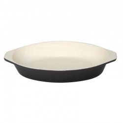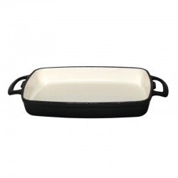 Materiaal: gietijzer. Afmeting: 7(h) x 40,5(b) x 25(d)cm. Geschikt voor inductie.