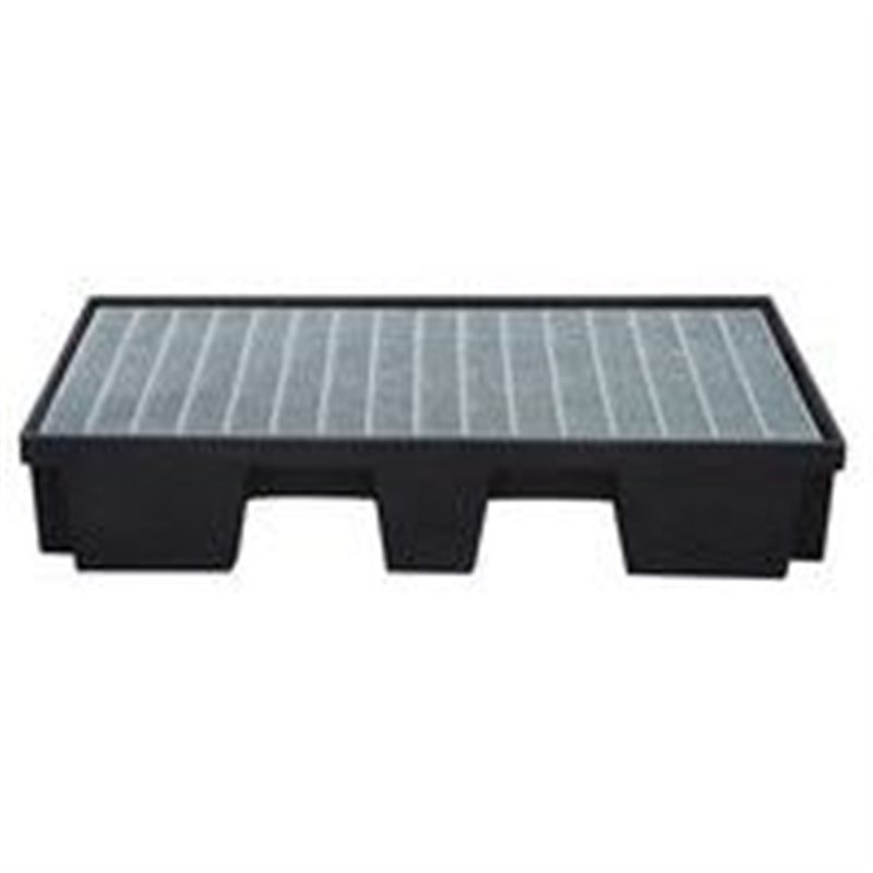 Opvangbak van gerecycled PE 120 L, Vermogen (aantal vaten): 2, Materiaal: Polyethyleen, Roostermat: ja