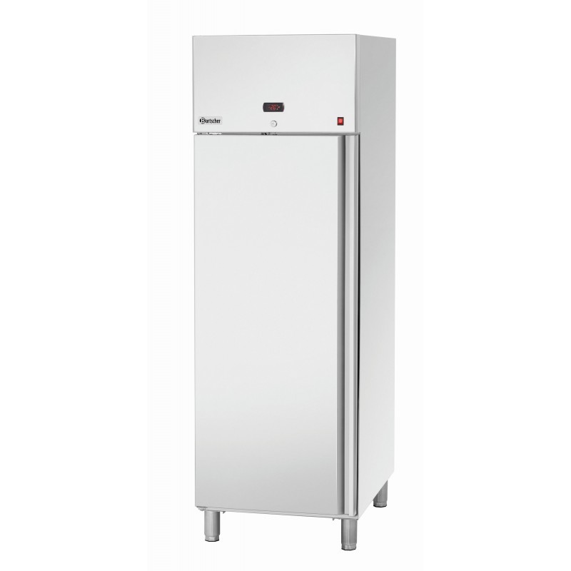 CNS 18/10 Luchtgekoeld Isolatie: polyurethaan, 60 mm dik Verstelbare roosters In hoogte verstelbare poten Afsluitbaar Automatische ontdooiing Dooiwaterverdamping Thermostaat Aan- / uitschakelaar Controlelampje Openingszijde deur verwisselbaar Voor omgevingstemperatuur van +32° C Bruto-inhoud: 700 liter Temperatuurbereik: -18 °C tot -22 °C Vermogen: 0,88 kW / 230 V 50/60 Hz Afmetingen: B 710 x D 810 x H 2010 mm Levering inclusief 3 roosters