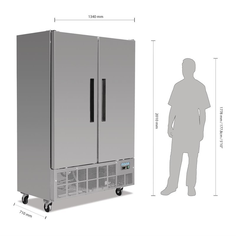Deze slimline, 2-deurs vriezer van Polar is ideaal voor keukens met beperkte ruimte. Met nauwkeurige digitale temperatuur controller en robuuste afsluitbare deuren, zodat uw producten veilig en op de juiste temperatuur bewaard kunnen worden. Dankzij de RVS en aluminium constructie en de robuuste wielen is de vriezer eenvoudig te reinigen en te manoeuvreren.