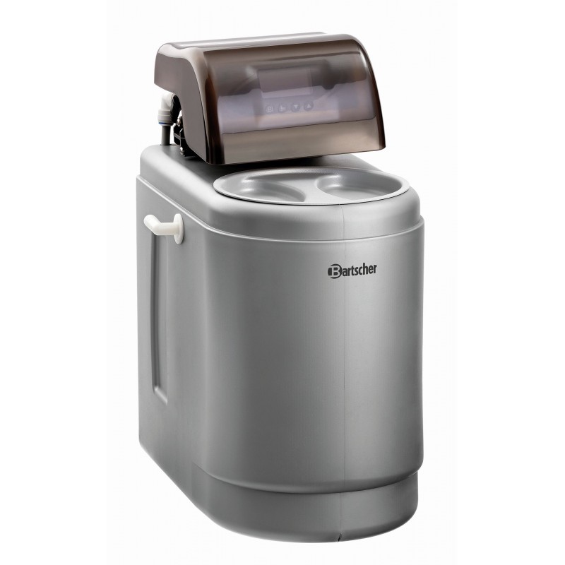 Kunststof Aansluit capaciteit: 1 apparaat Capaciteit bij 10° d (totale hardheid): 1350 liter / per dag Water aanvoerleiding temperatuur: 5 °C tot 40 °C Wateraansluiting 3/4" Digitale weergave voor instelling van: waterhardheid, interval, regeneratie, tijd, taal Regeneratie: naar keuze instelbaar via doorvoerhoeveelheid of tijd Vermogen: 0,03 kW / 220-240 V 50/60 Hz Afmetingen: B 255 x D 435 x H 450 mm