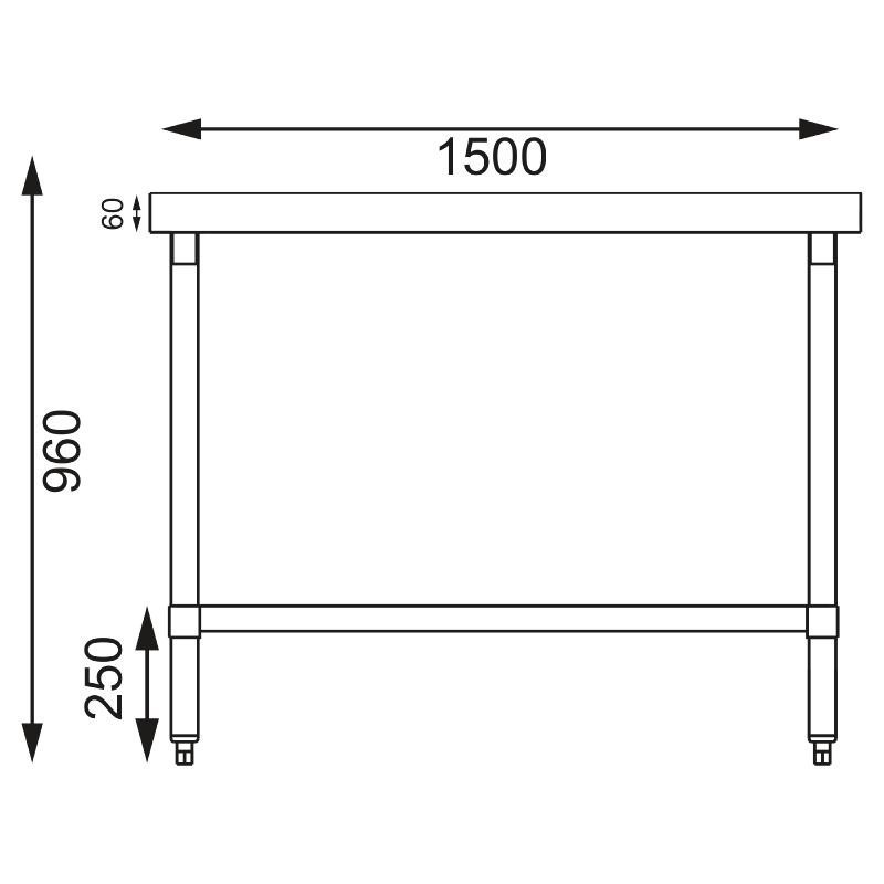Vogue RVS werktafel zonder achteropstand 90x150x60cm