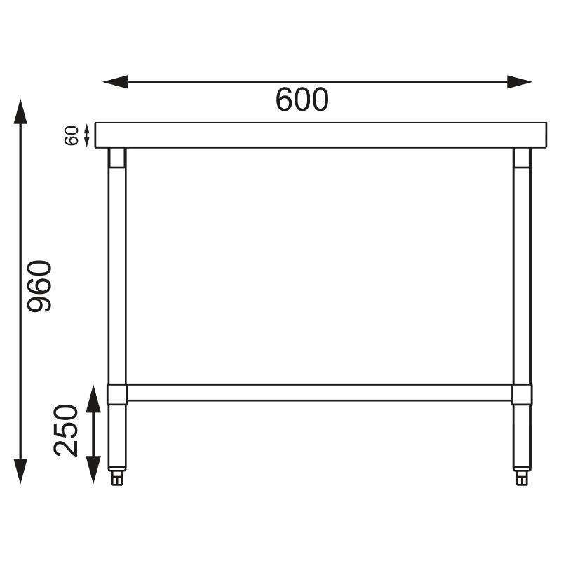 | Overige Kenmerken | Zonder achteropstand, 1,2mm dik RVS werkblad, Gegalvaniseerd stalen poten, In hoogte verstelbaar, gegalvaniseerd stalen onderblad, Plat verpakt voor een eenvoudige montage, Maximale belastbaarheid bovenblad: 250kg (verdeeld over het gehele blad), Oppervla |